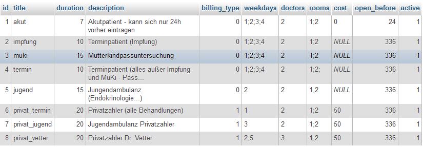 database view for the selection of meeting types