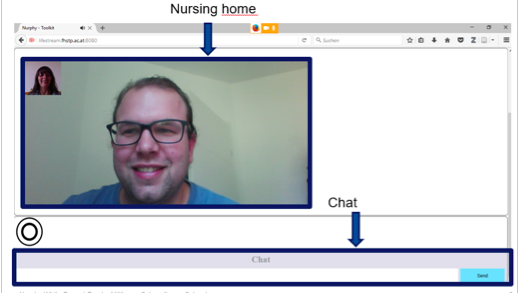The NurPhy prototypical application used a central (fhstp) server for data exchange that was implemented with Node.js. For real-time communication, the Web-Socket protocol was used, while the video-communication, screen sharing and documents transfer were enabled with the OpenTok/Tokbox framework (tokbox, n.d.).
