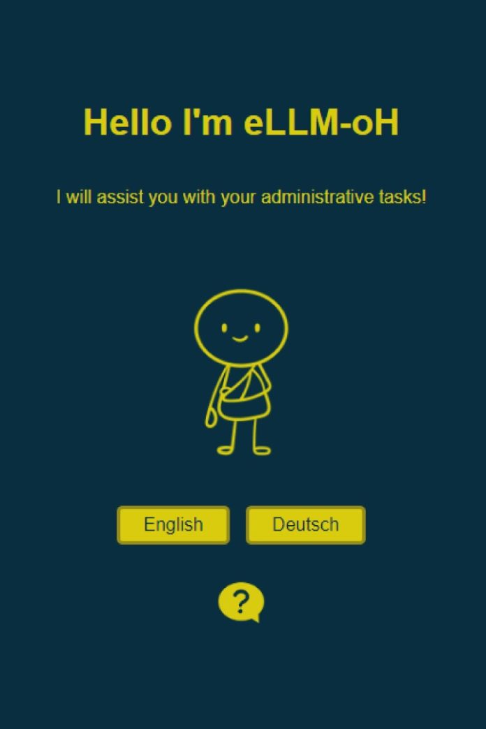 The eLLM-oH project utilizes Large Language Models (LLMs) to optimize emergency department operations in acute healthcare. Its goal is to automate administrative tasks, reduce staff workload, and improve patient and nurse support. The aim is to decrease waiting times, enhance admission accuracy, resource optimization, and provide improved assistance to patients with disabilities or language barriers. The target audience is healthcare staff and patients, with hospitals being the primary customers. The key features of this system include speech interaction, natural language processing for symptom gathering, self-service registration, and multiple language options. These features are aimed at minimizing patient-staff contact and improving the emergency care experience.