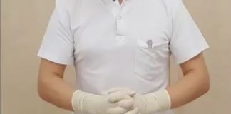 In diesem Video wird das Schema des Anziehens von sterilen Handschuhens dargestellt.